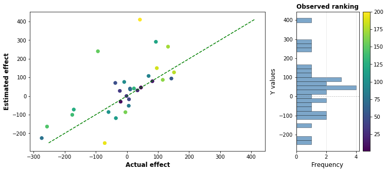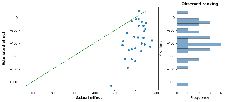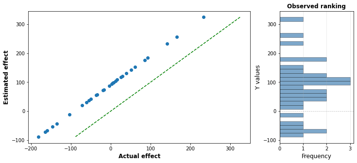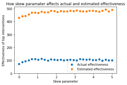 In the following graph, we can see the effect that this has on actual and estimated effectiveness: