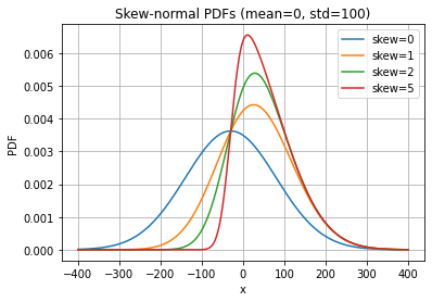 As one example, we might take issue with the assumption that charity intervention is perfectly symmetric. One could argue that the vast majority of charities are actually trying to make the world a better place, even if they don’t always succeed. I might decide to model the actual effectiveness therefore as a skew-normal distribution like the following: