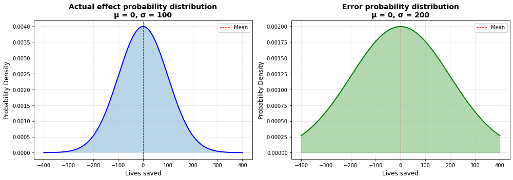 In our model so far we have made the assumption that both the actual effectiveness and error range are sampled from normal distributions. This is a common assumption to make, but it’s unlikely that either of these will perfectly follow a normal distribution in real life.